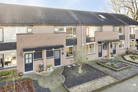 Entree met toilet en garderobe. De meterkast is vernieuwd in 2024. Vaste kast. Toegang tot de living, uitgevoerd met een fraaie massief eiken houtenvloer. De zithoek is voorzien van een sfeervolle schouw met inbouwhaard. De royale raampartijen in de voorgevel bieden veel lichtinval, daarnaast biedt het hoekkozijn ruim zicht over de omgeving. In de achtergevel zijn twee openslaande tuindeuren geplaatst, die rechtstreeks toegang bieden aan het zonneterras. Half open keuken, met recent in 2024 geplaatste luxe inbouwopstelling. Compleet uitgevoerd met inbouwapparatuur zoals: een inductiekookplaat, afzuigkap, combioven, vaatwasser en een koelkast. Een strak composiet werkblad maakt de keuken af.